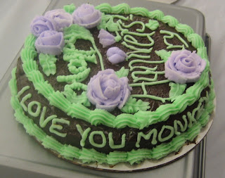 In preparations for our Christmas trip to St. Louis, I baked a triple layer cake - yellow cake, chocolate ganache filling, chocolate fudge cake, chocolate ganache filling and yellow cake. It is decorated with buttercream.